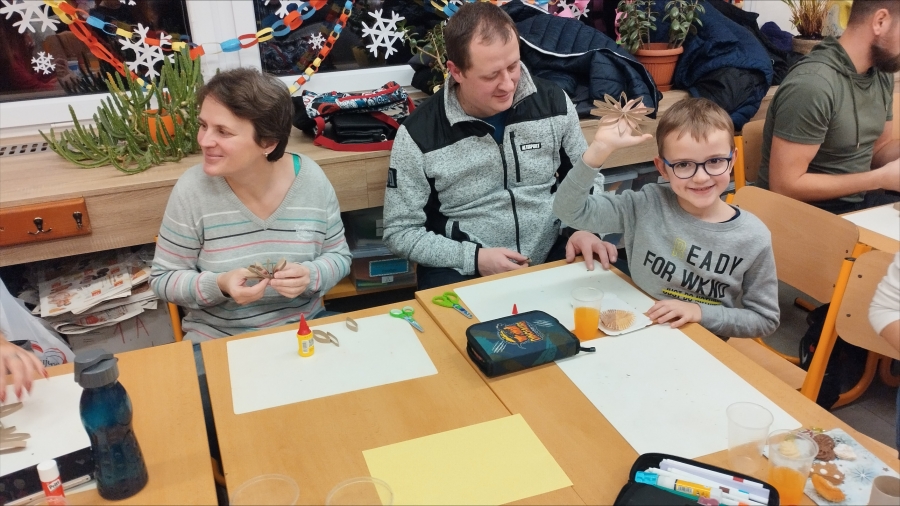 Letos to byla jízda. Po celé škole byla rozmístěna stanoviště, kde si návštěvníci mohli vyrobit adventní svícen, ozdobit perníčky, vyrobit přání nebo náramek, zasoutěžit si, nebo si jen poslechnout vánoční koledy a dostat se do vánoční nálady. Na jarmarku si poté mohli nakoupit krásné výrobky z naší školní družiny a osvěžit se nealkoholickým punčem.