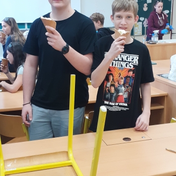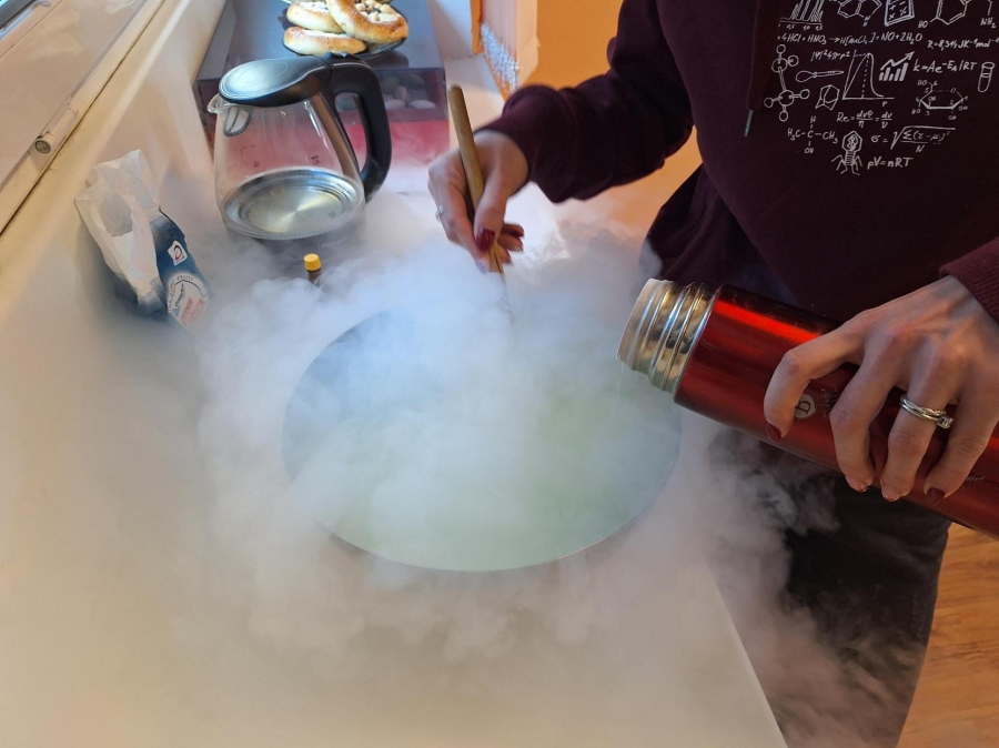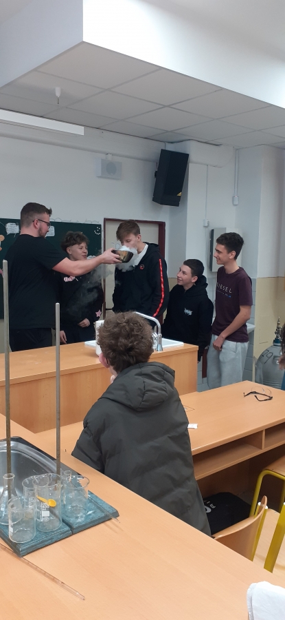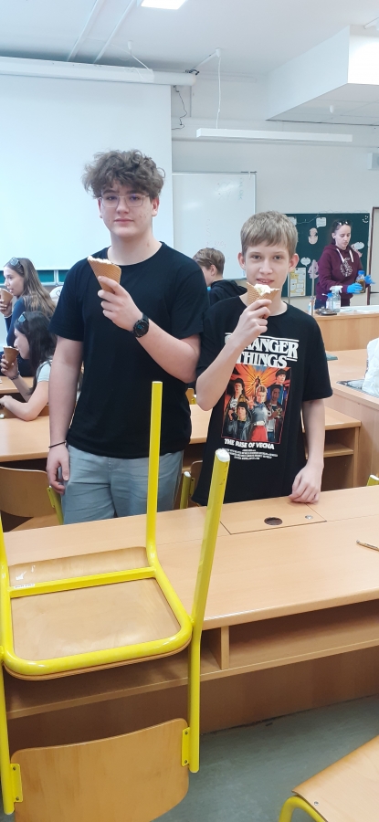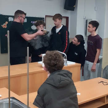 Zlatým hřebem každé hodiny byla výroba zmrzliny. Pomocí tekutého dusíku, smetany a potravinářského barviva vznikla přímo před očima žáků a mohli si ji na závěr hodiny vychutnat. Tento zážitek krásně propojil teorii s praxí a ukázal, že chemie může být nejen poučná, ale i velmi zábavná.