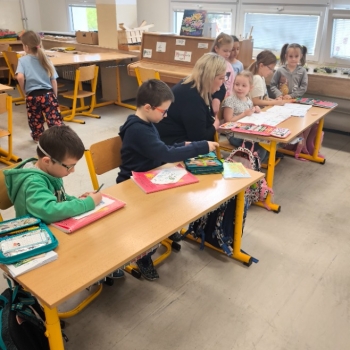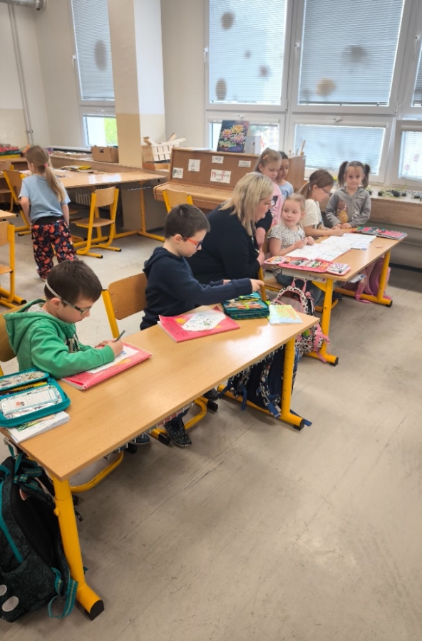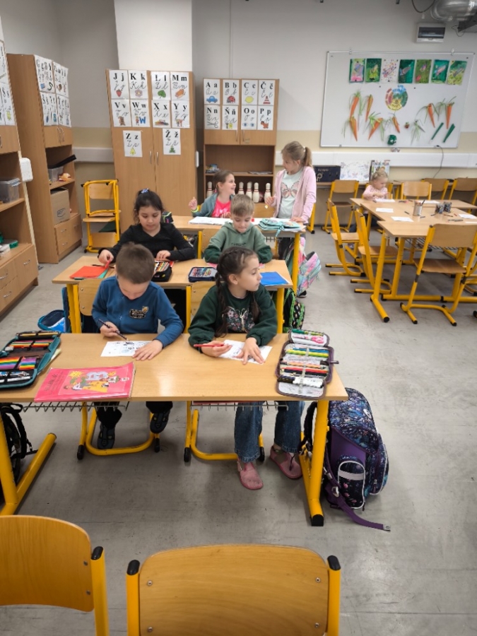 Děti společně prožily veselou vyučovací hodinu, ve které si zazpívaly, hrály s písmenky i číslicemi a kreslily. Atmosféra byla plná smíchu, zvědavosti i prvních nových kamarádství. Předškoláci se už teď nemůžou dočkat, až se příští rok budou se svými kamarády potkávat o přestávkách přímo u nás ve škole.