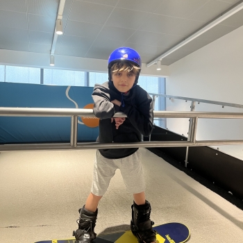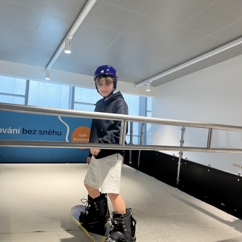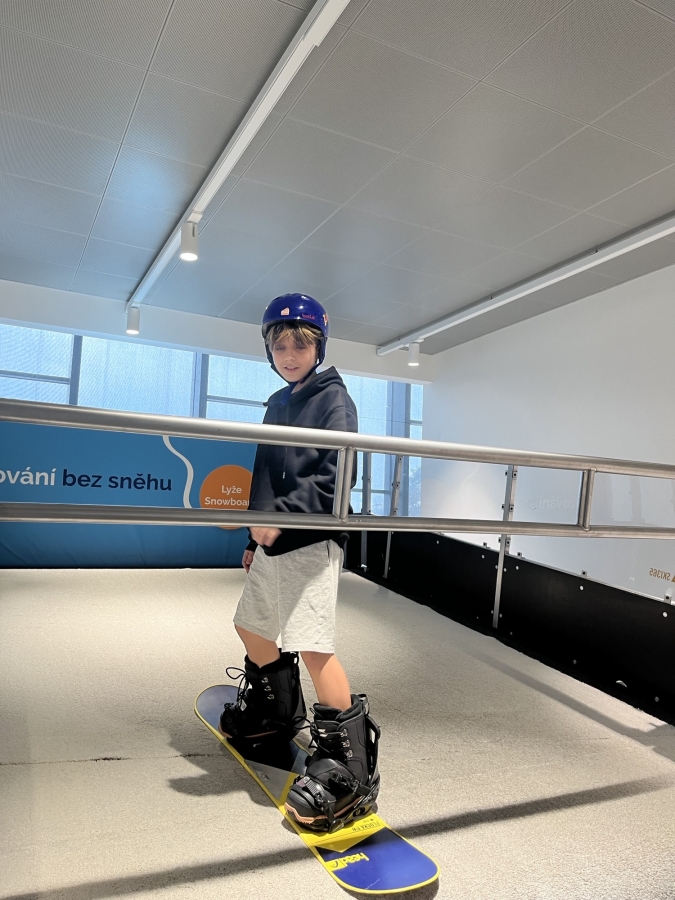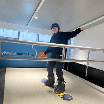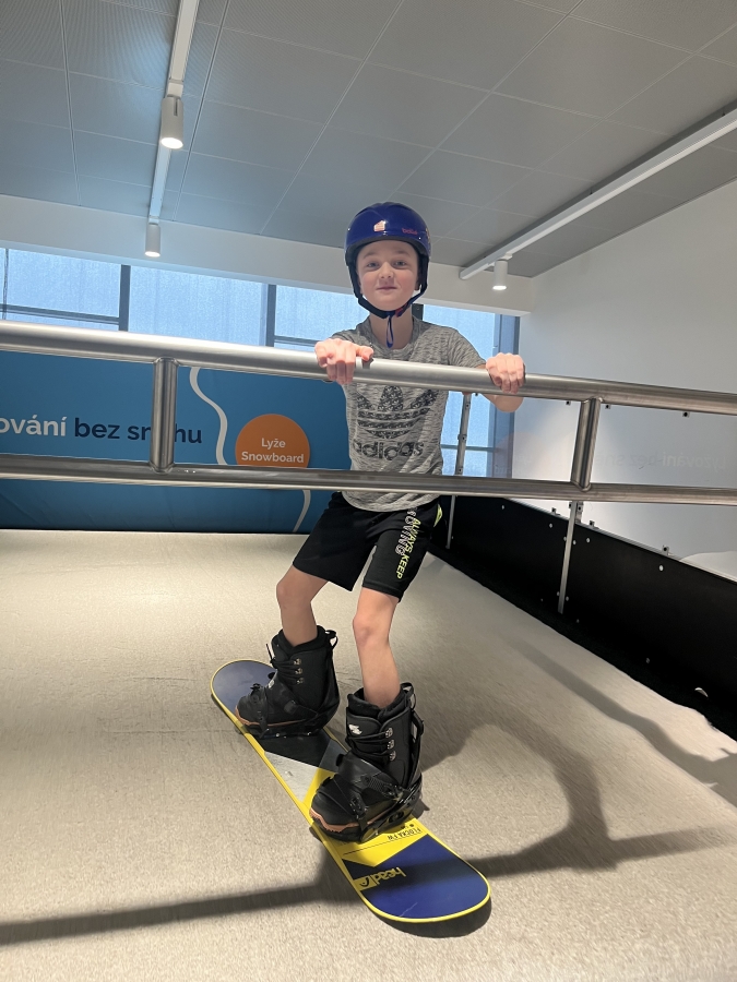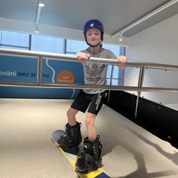 Největší radost dětem přinesla možnost vyzkoušet snowboardový trenažér.