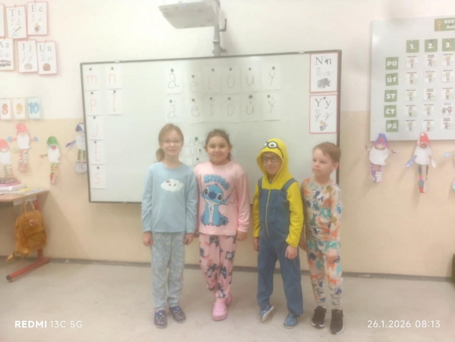 Do akce se zapojilo mnoho žáků, kteří dorazili v pohodlných pyžamech a někteří si s sebou přinesli i plyšové kamarády. Školní chodby tak zaplnila pohodová a veselá atmosféra.Článek naposledy upravi(a) Irein Markéta dne 28.01.2026.