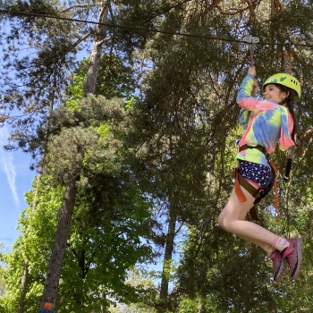 Ráno nás před školou vyzvedl moderní autobus, od jehož metalízy se odrážely paprsky slunce slibující příznivé počasí pro náš záměr. Za hlasitých výkřiků „ách“ nebo „pecka“ se hlouček „čtvrťáků“ vydal na souboj o nejlepší sedadla v autobusu. Pan řidič nás s úsměvem na tváři dovezl k prvnímu bodu naší velké výpravy, do Rožnova pod Radhoštěm. Náhle se ocitáme v džungli lan, klatek, karabin a stromů. Po důkladném výkladu našich instruktorů se vydáváme na souboj s gravitací, překážkovou dráhou a naším vnitřním strachem. Za zvuků „ááááááá“ a „ííííí“ děti sjíždí ocelové lano, kde na ně dole čeká měkoučká žíněnka. Čtvrťáci ale nejsou žádní slaboši, jen co se dostanou ze stromů dolů, už procvičují svalstvo nohou na místních trampolínách, jiní se zdokonalují v soustředění při střelbě z luku, či u hraní minigolfu. Nesmíme opomenout, že je nutné utratit nějaké to kapesné za nanuky a nejrůznější pochutiny. Slunce se zvedá výš a my se autobusem opět přesouváme k druhému bodu naší cesty, zasloužené slaďoučké odměně. Vystupujeme, před námi se tyčí obrovská továrna slibující výpravu za záhadami pečení. V centru „Marlenky“ jsem se dozvěděli množství informací o vzniku receptu pro výrobu medových dobrot, zajímavosti o majiteli, ingrediencích i rozvozu. Pustili jsme se s průvodkyní do útrob továrny, kde jsme zahlédli množství strojů, balících jednotek, barevných krabic a hlavně kakaa, medu, oříšků, těsta… Zezdola na nás mávali veselí zaměstnanci odění v ochranných návlecích a vlásenkách na hlavách. Po ochutnávce různých druhů výrobků jsem se vysílení dosoukali do autobusu, který nás dovezl bezpečně k budově naší školy.