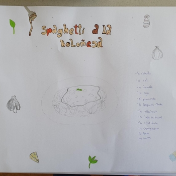 Žáci 8.A a 8.B si "navařili" svůj oblíbený pokrm, postup však měli ve španělském jazyce. Zároveň ztvárnili i jeho konečnou podobu ve formě chutných obrázků.