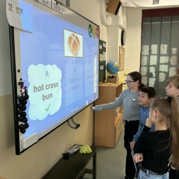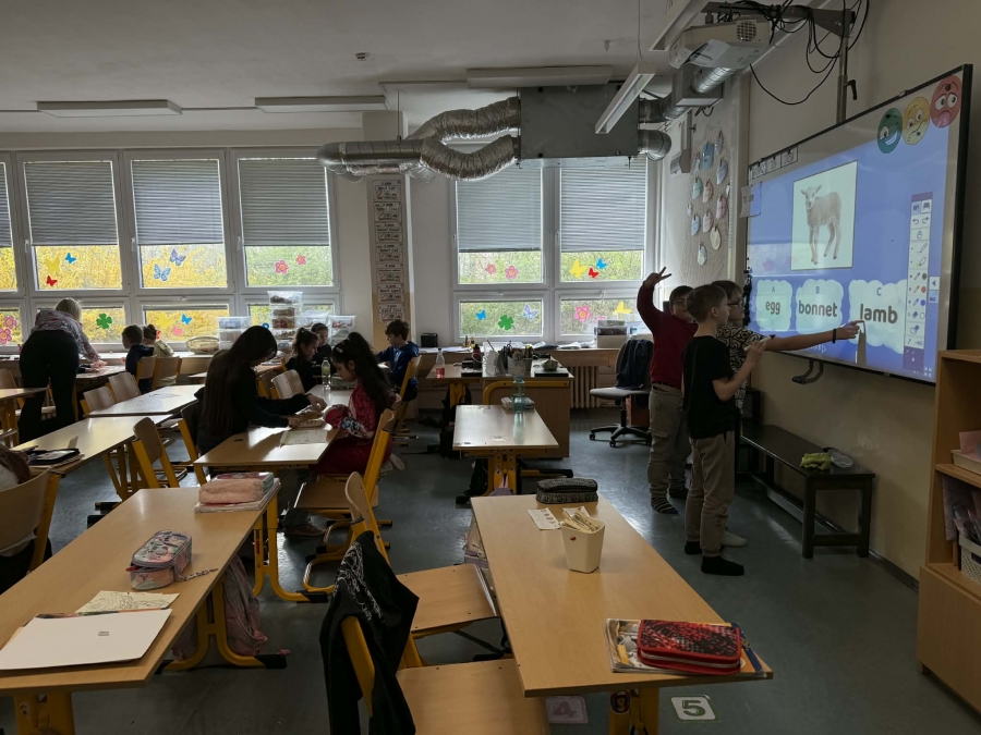 Dne 1. 4. 2026 spojily paní učitelky Irein a Gorová síly a uskutečnily velikonoční tandemovou hodinu anglického jazyka pro třídu 4. A. Hlavním cílem bylo hravou formou procvičit jednoduché věty, rozšířit slovní zásobu a zároveň podpořit spolupráci mezi žáky. Nechyběl ani pohyb, aby si žáci od učení trochu odpočinuli a zapojili i svou motoriku.