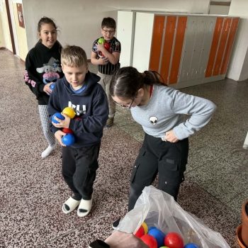 Velkým zpestřením byla závěrečná aktivita v podobě „Easter egg hunt“, která byla přizpůsobena školnímu prostředí. Žáci při ní sbírali plastové míčky ukryté v šatnách. Nadšení a radost z pohybu byly opravdu nakažlivé. Za svou snahu a aktivní zapojení byli žáci na závěr odměněni malou sladkostí.