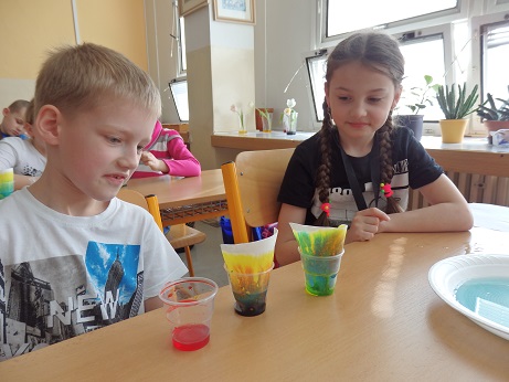 Jarní měsíce byly pro děti 1. stupně na tvořivé. Pod vedením paní Ivony Kydalové si vyzkoušely novou techniku – práce s pískem.